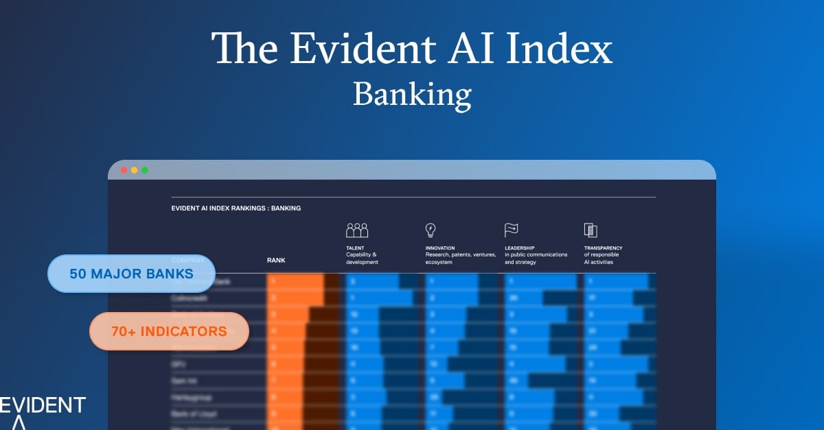 In Case You Missed It: The Evident AI Index sets the global standard for measuring how banks are adopting AI. It is the most comprehensive and trusted benchmark of its kind, analysing 50 of the world’s largest banks and drawing on millions of publicly available data points across four critical pillars of AI capability: Talent, Innovation, Leadership, and Transparency.