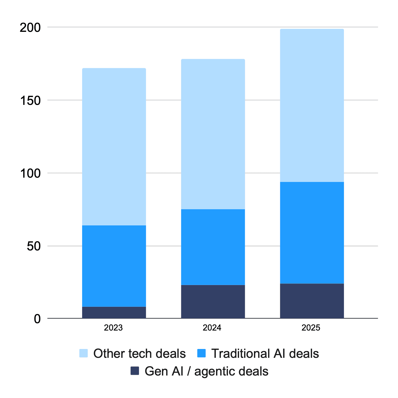 AI deals made up nearly half of the 199 tech deals done in 2025 by the 50 banks we track in the Evident AI Index
