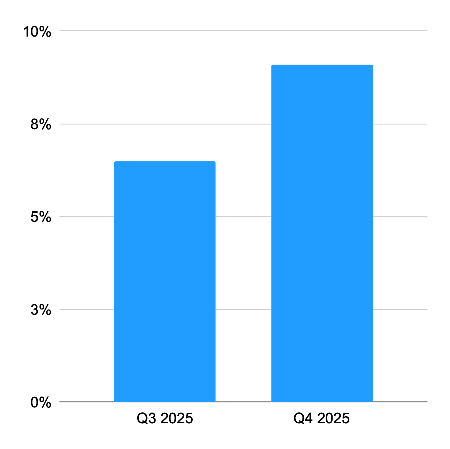 Not even the prospect of a credit card interest-rate cap could knock the technology off the investor docket this month, our analysis of 20 call transcripts shows. In our first edition of the year, TD Cowen analyst Steven Alexopoulos told us CEOs may shy away from AI talk as they worked out how to address the labor force (see: “Earnings preview,” The Brief, Jan. 8). He and fellow analysts made sure that didn’t happen: Roughly two-thirds of the AI conversation in this quarter’s calls so far has come from the Q&A portion rather than the prepared remarks.