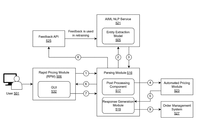 This patent describes a system that reads Requests for Quote (RFQs) in natural language, translates what the client means, sends the request for automated pricing, and replies in plain English.