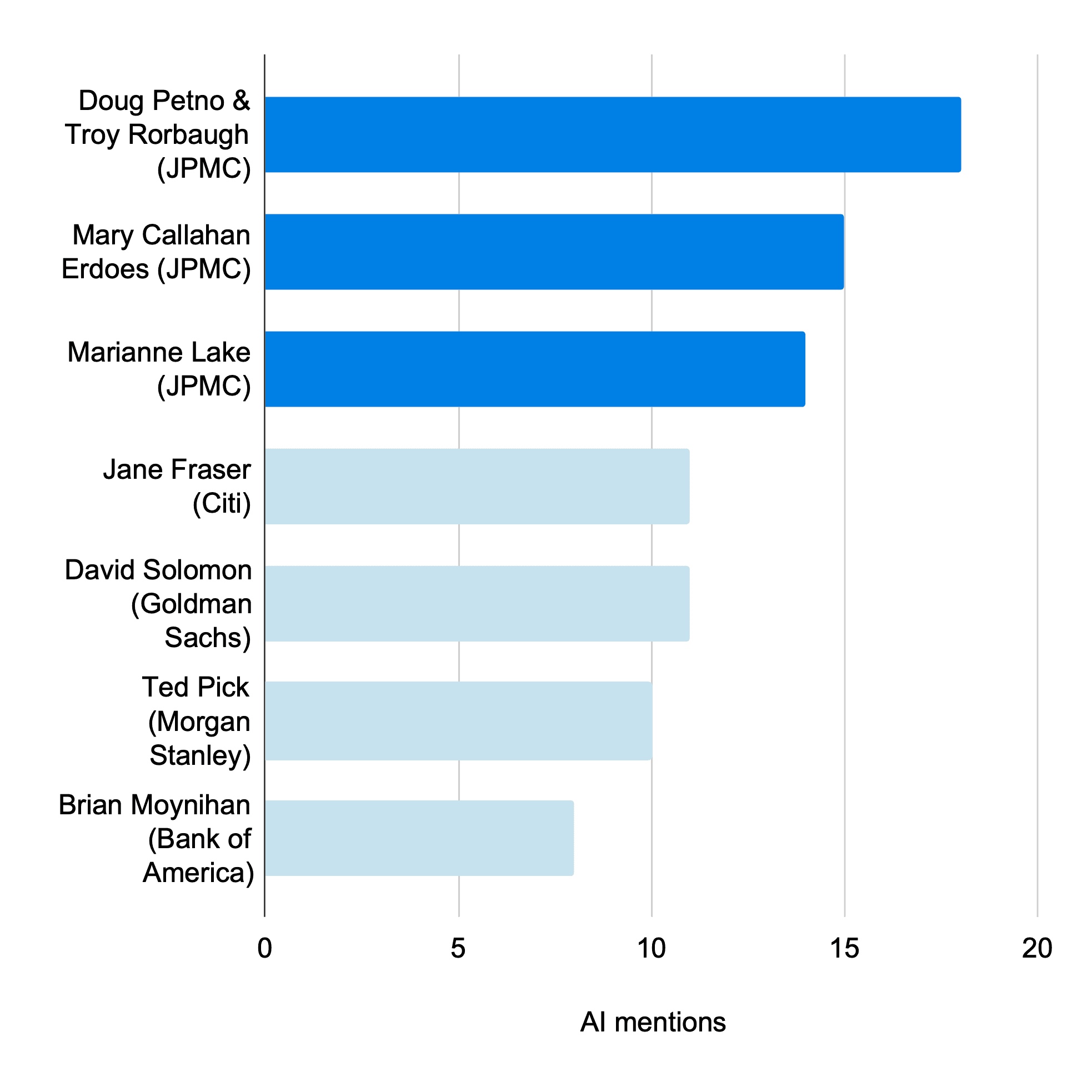 Most banks still aren’t at a place to communicate those business-specific improvements, at least not with that level of detail. As you can see above, the three letters by JPMC lieutenants had greater AI focus than most bank CEOs.