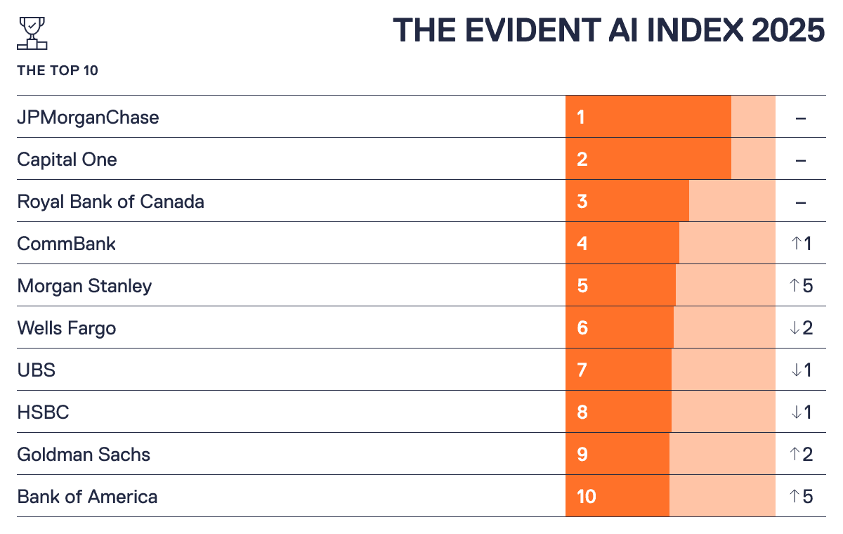 Our 2025 Evident AI Index for banks is out. In this special edition of The Brief, we’ll tell you who’s leading, rising and fading in the industry benchmark of AI adoption. Dig even deeper with the Key Findings Report, also published today.