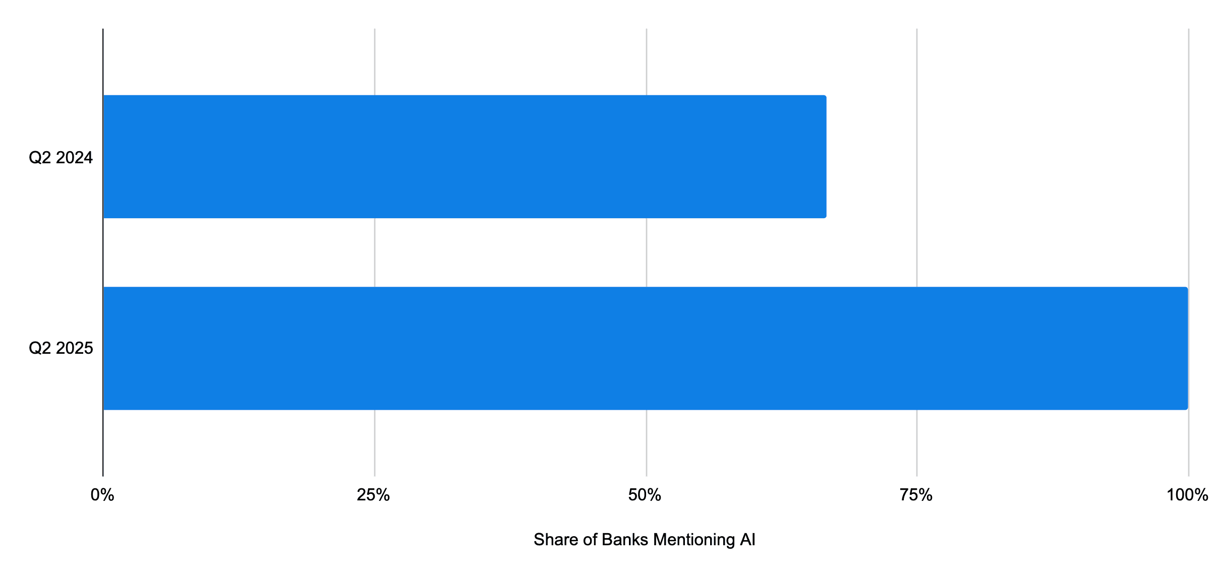 Each of the 21 banks reporting earnings through July 22 has discussed AI during their calls, up from 67% at this point in earnings season a year ago.