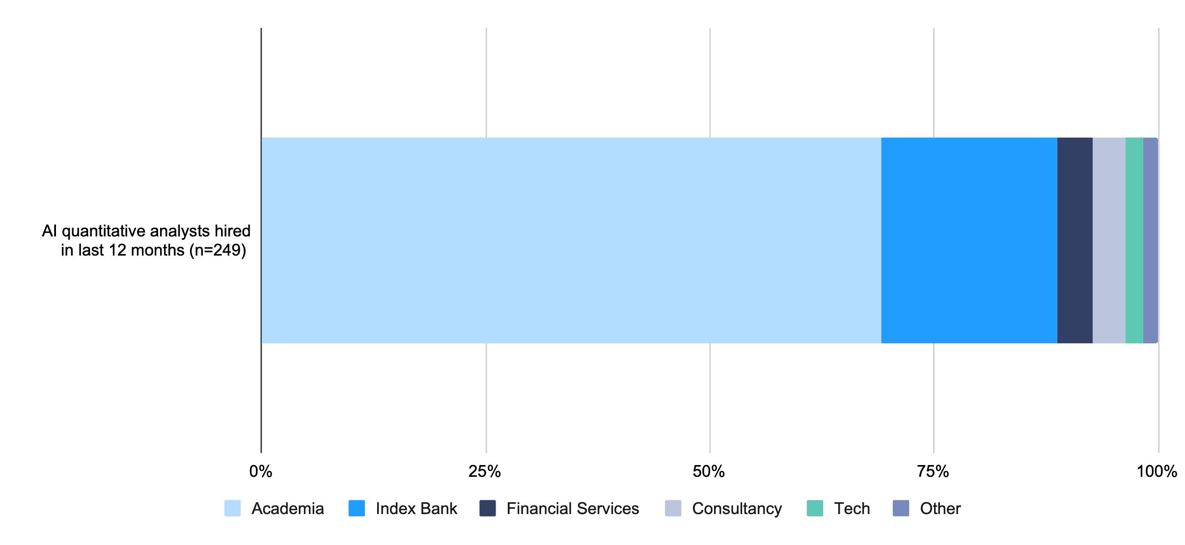 In the last year, nearly 70% of AI model developers hired at the 50 banks we track came from academia. One-fifth of all the hires came directly from other banks.
