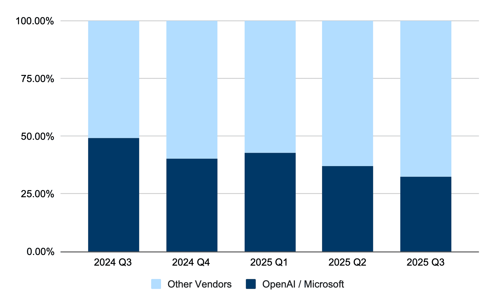 The share of use cases featuring the ChatGPT maker at the 50 banks we track has been cut by one-third in the last year.